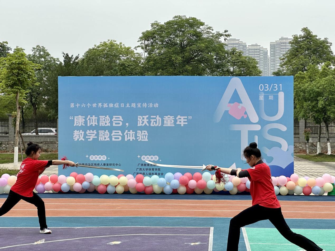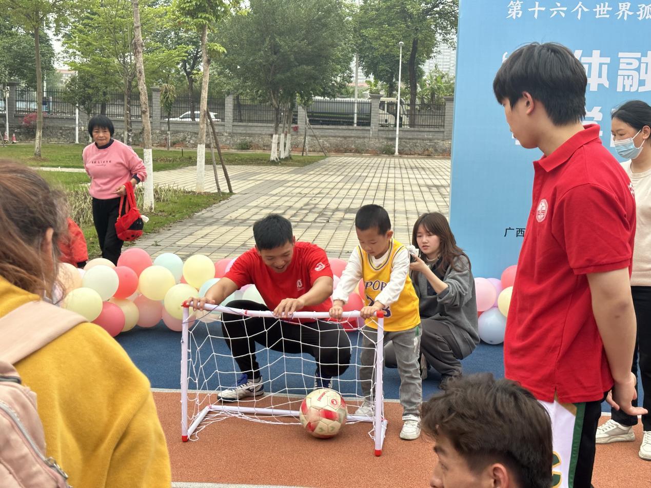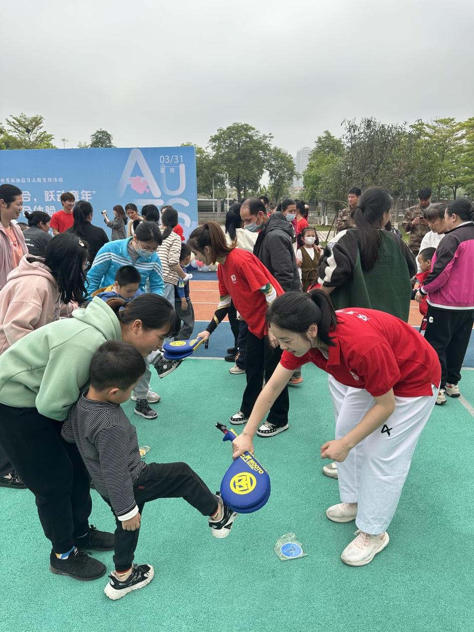 4月2日是第十六个“世界孤独症日”,在太阳集团tyc138校团委姜玮副书记以及太阳集团tyc138体育学院党委的带领下,在当天下午我院与自治区残疾人康复研究中心联合举办了“康体融合,跃动童年”康体融合线下教学活动。活动现场,我院志愿者发挥了自身特长,给小朋友们带来了啦啦操、篮球、网球、跳绳以及格斗等多项体育活动的展示,并带领在训残疾儿童及家长参与到运动中感受体育带来的愉悦与快乐。