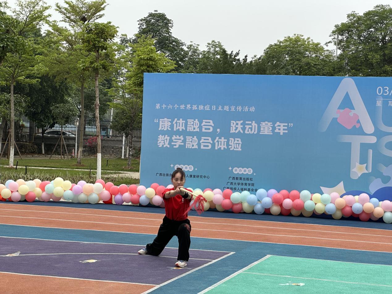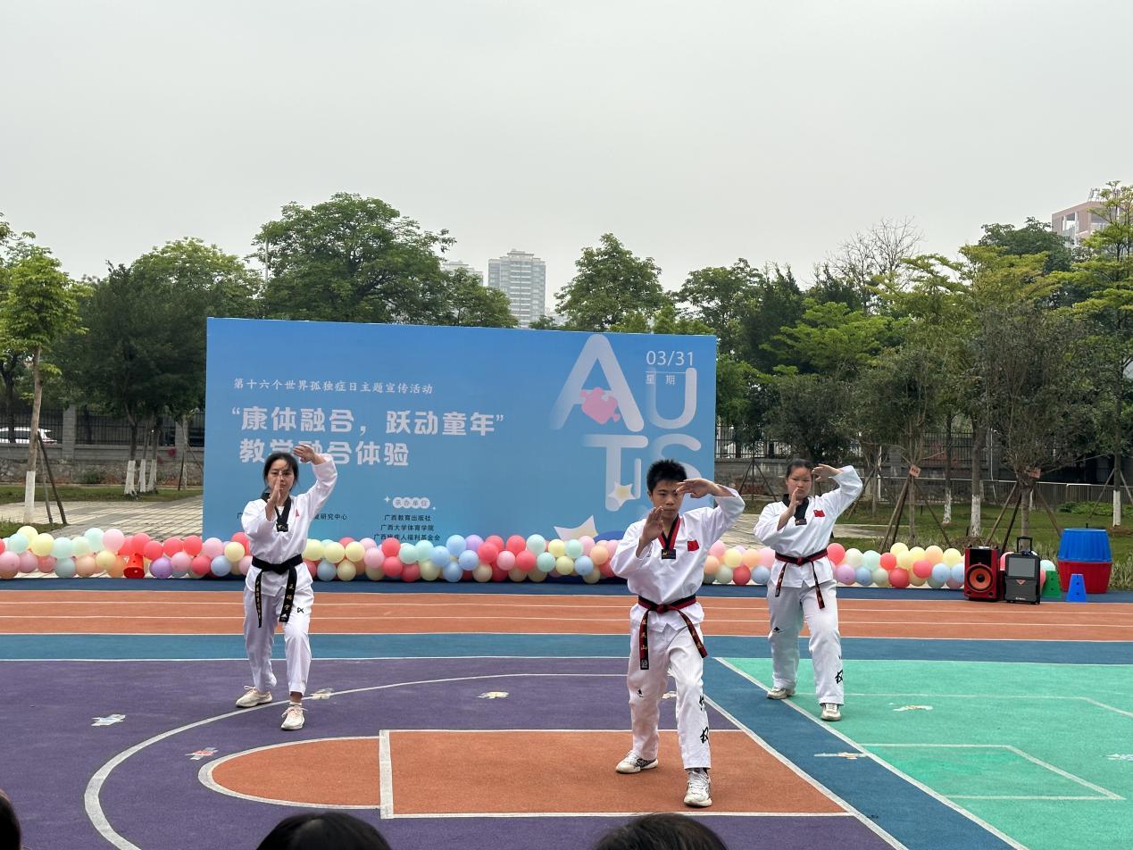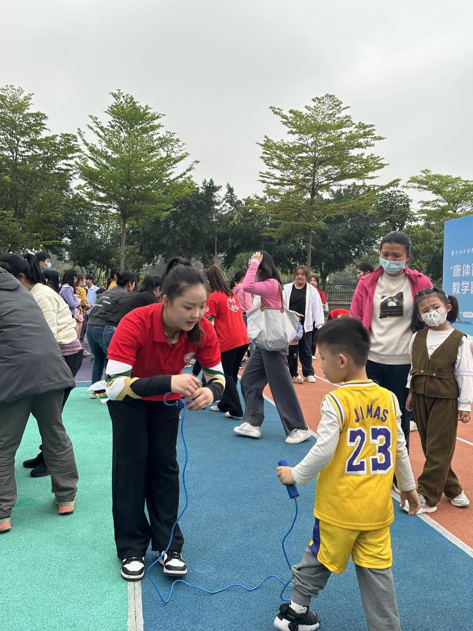 4月2日是第十六个“世界孤独症日”,在太阳集团tyc138校团委姜玮副书记以及太阳集团tyc138体育学院党委的带领下,在当天下午我院与自治区残疾人康复研究中心联合举办了“康体融合,跃动童年”康体融合线下教学活动。活动现场,我院志愿者发挥了自身特长,给小朋友们带来了啦啦操、篮球、网球、跳绳以及格斗等多项体育活动的展示,并带领在训残疾儿童及家长参与到运动中感受体育带来的愉悦与快乐。